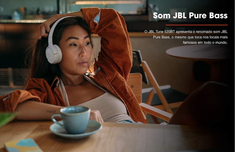 Fone De Ouvido JBL, Tune 520bt, Bluetooth Até 57hrs App Comando De Voz - Preto
