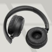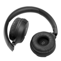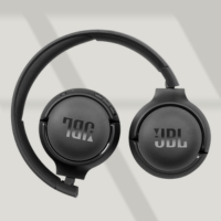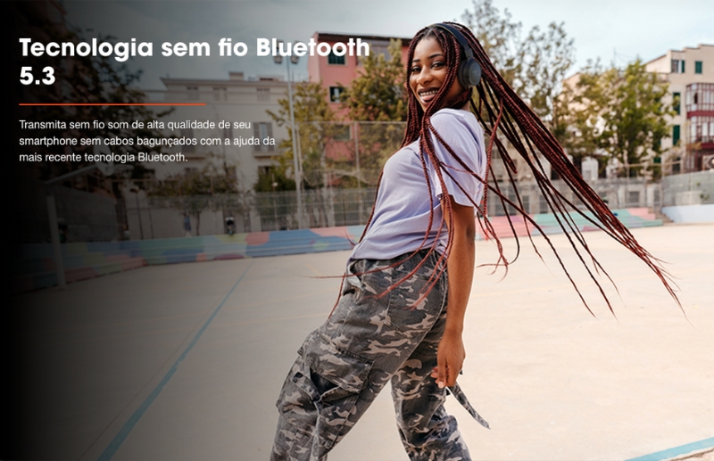 Headphone preto com som JBL Pure Bass, tecnologia sem fio bluetooth 5.3 e até 57 horas de bateria.